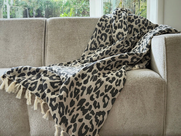 Plaid Panter Sprei - Beige Zwart - 150x250cm